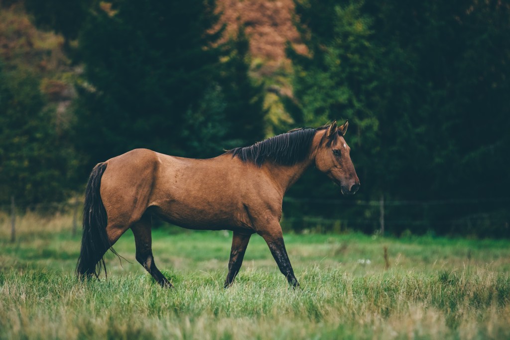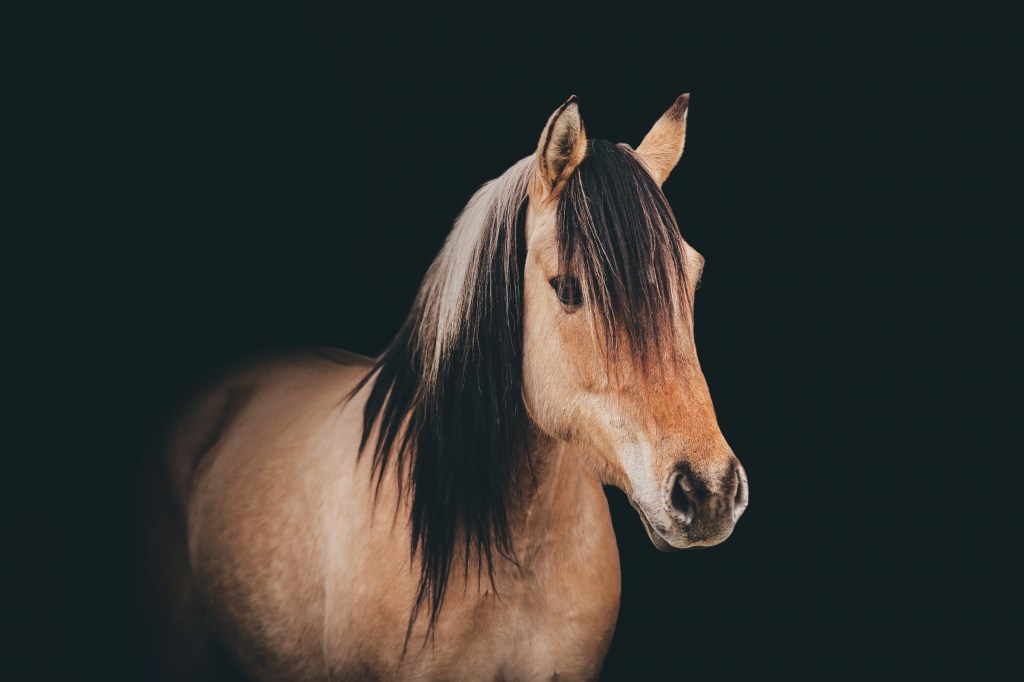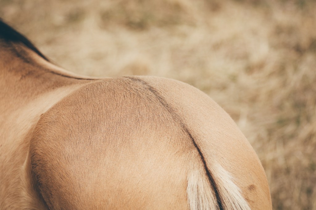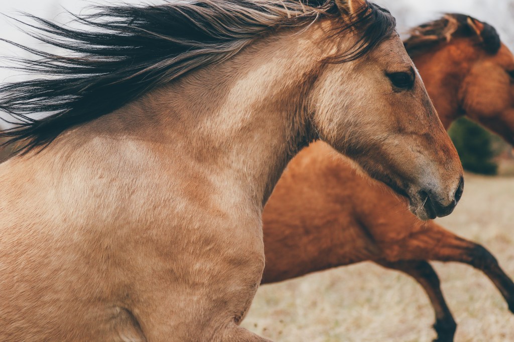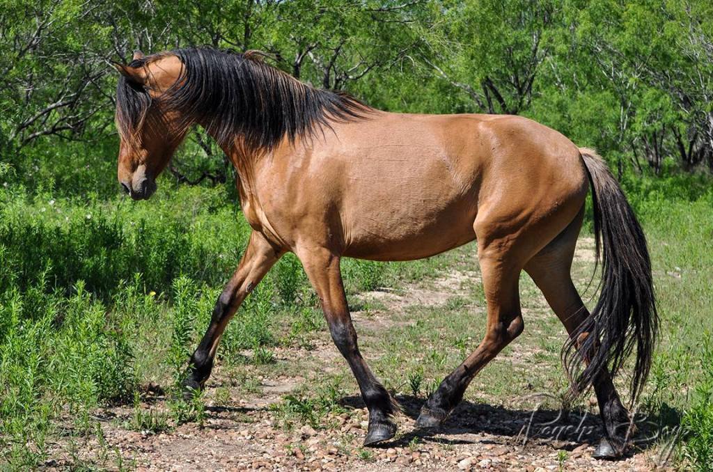 The Kiger Mustang can come in many different colors including dun, grulla, red dun, bay and black.The kiger Mustang should have dun factor and others characteristics expressed. Dun marking factors: Dorsal, leg barring, lacing,cobwebbing on face, mask on face, fishbone/sawtooth on dorsal, eye bars, hock barring, ventral dorsal, fawn in ears, black outline on eras, barring on back of ears,bi-coloring in mane/tail.The Kiger Mustang is generally a medium size horse ranging from 13.2 hands to 16 hands, with a preferred height of 14-15.2 hands.